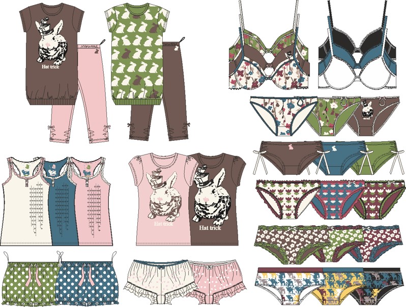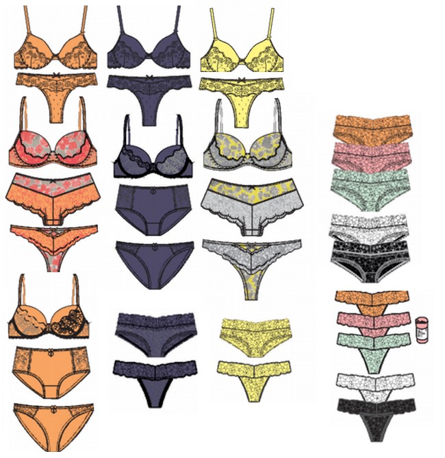 I have a lot of experience of designing underwear for more adult customer. In this spring collection below I wanted use bright colours in interesting and commercial way.
